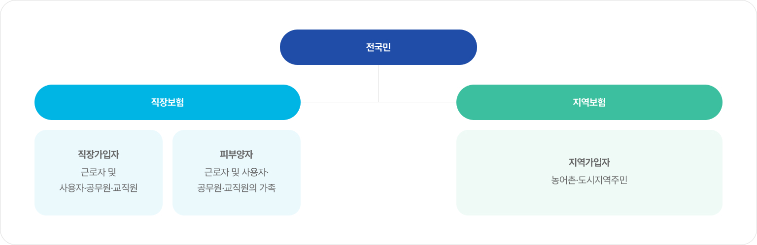 • 지역가입자 : 직장가입자·피부양자를 제외한 농·어민, 도시자영업자 등 지역주민